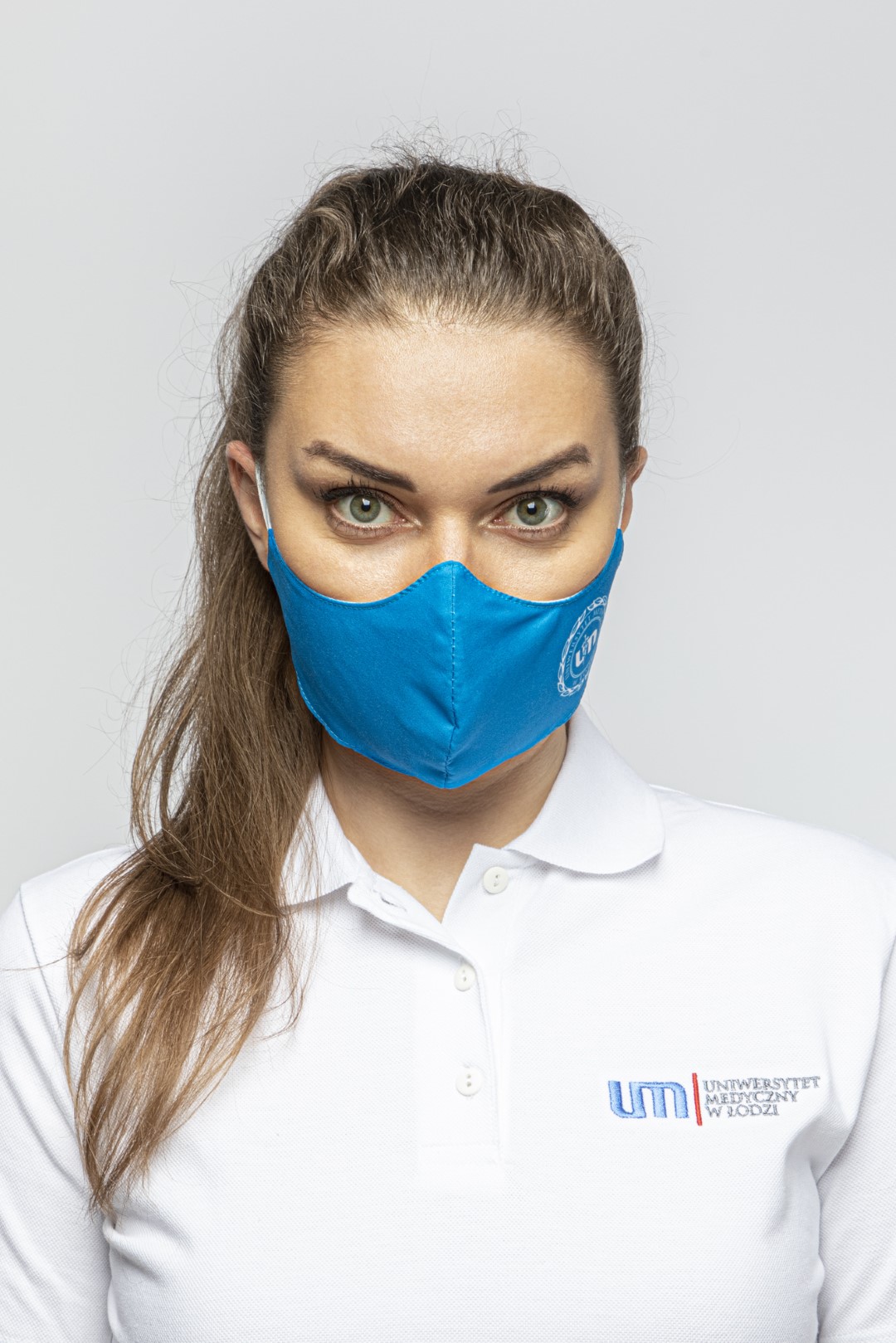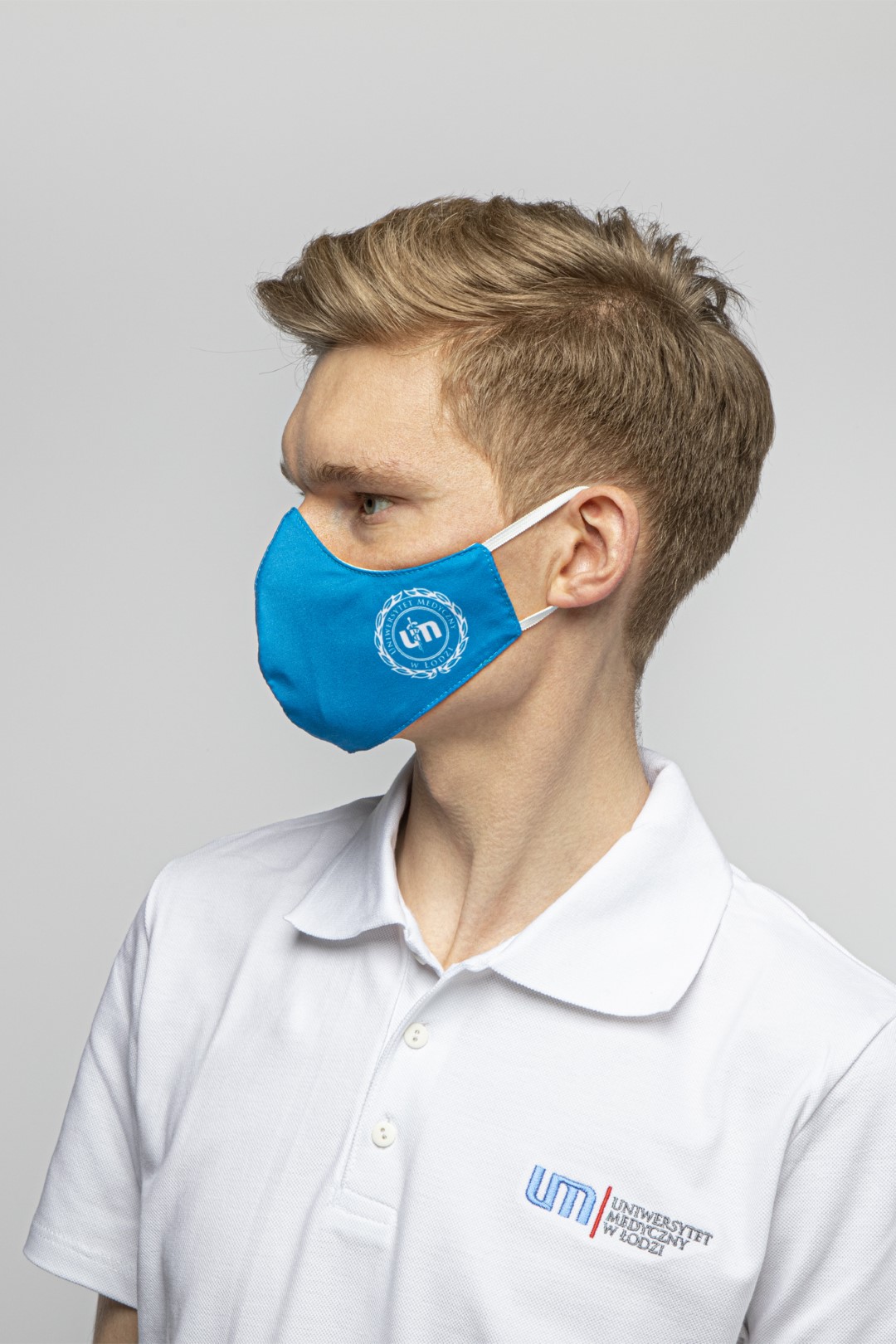 Zdecydowanie najważniejszy środek ochrony indywidualnej podczas trwającej pandemii. W centralnej części maseczki rozpoznawalny przez wszystkich studentów, pracowników i wykładowców herb UMEDu. Wyprofilowany krój materiału zapewnia dodatkowy komfort oraz wpływa na zwiększone przyleganie do twarzy. Kolor niebieski. Krój unisex, profilowany.